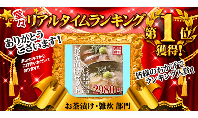 ・飲んだ後に食べたい「〆飯」1位はラーメンではなく「お茶漬け」が選ばれています「ホットペッパーグルメ外食総研」の「食べたい〆グルメ」ランキング ・一人暮らしのあの人へ、惣菜を送るならコスパが抜群のお茶漬けがおススメです。