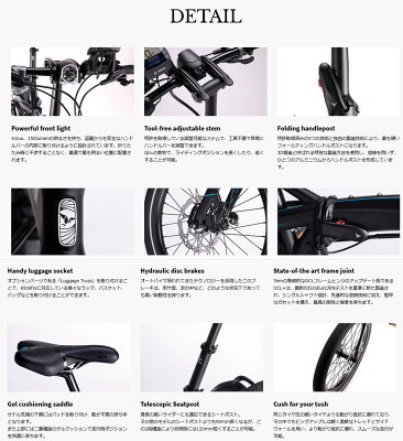 Tern独自の素早く簡単に折りたためる機構も採用し、コンパクトな収納も可能にするなど、街中での効率良い最適な移動手段だけでなくサイクリングなどのスポーツ性と収納性など多様性を持ち合わせた1台となる。